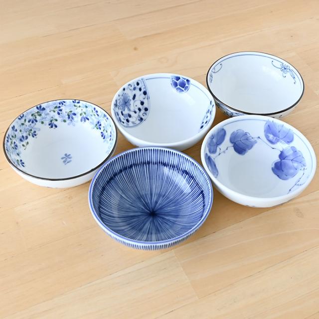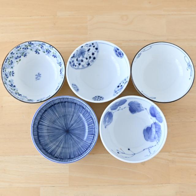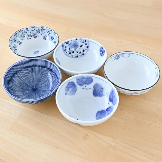 飽きの来ない染付柄の5個セット。人気の軽量シリーズは日常使いに重宝します。