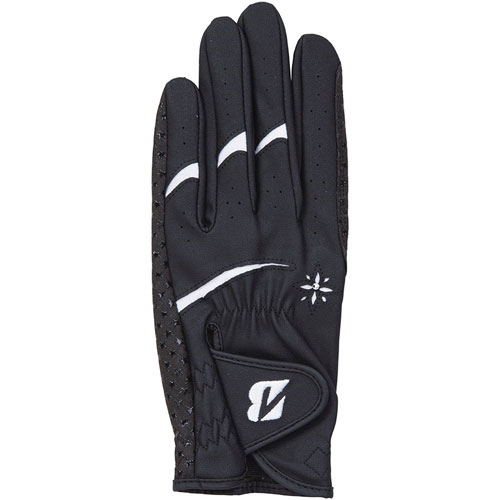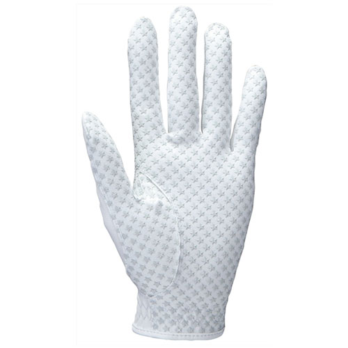 「グリップ力」を求める女性ゴルファーの為の高機能グローブ。手のひら側に星柄シリコーンプリントを施し、密着性を高めることでスイング時のグローブとクラブのグリップ部のズレを抑制します。甲側には花柄モチーフ部にラインストーンを施し、手元に華やかさをプラス。