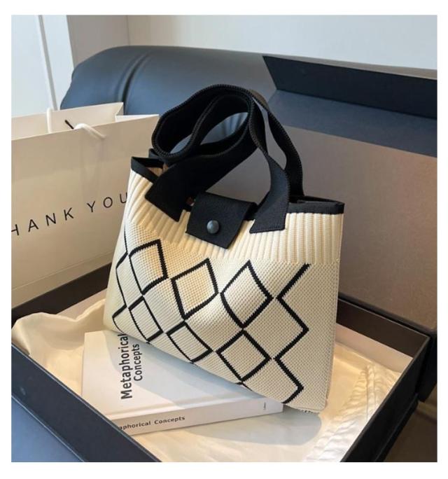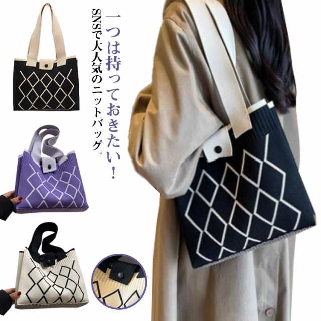 トートバッグ スクエアバッグ ワンショルダー 幾何学模様 ニット編みバッグ 肩掛けバッグ 鞄 レディース カバン 韓国 ハンドバッグ エコバッグ マチあり トートバッグ ミニトート ボタンで開閉 大容量 軽量 お出かけ 通勤
