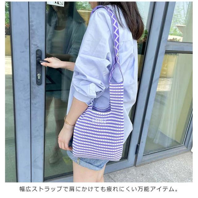 | 統一感があり、おしゃれ度アップ♪ニットバッグと同じ素材のショルダーストラップ。 エスニック柄が華やかさをプラスし、ニットバッグをもっと上品で大人な印象に仕上げてくれる逸品! スナップボタンで簡単に長さ調節や取付・取り外し可能なので、アレンジ自由自在! 幅広ストラップで肩にかけても疲れにくい万能アイテム。 ニットバッグのほか、お手持ちのトートバッグやハンドバッグにも◎簡単にイメチェンできます◎ | |
