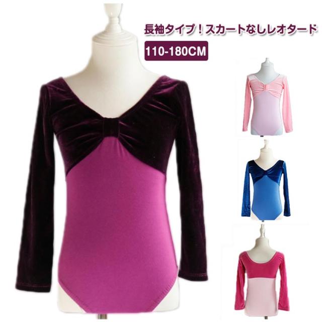 レオタード 長袖 バレエ キッズ 子供 ジュニア スカートなし シンプル 袖あり シンプル ストレッチ 伸縮 練習 レッスン 新体操 バレエ用品 おしゃれ ジュニア 無地 可愛い 大きいサイズ 子供服 快適 送料無料