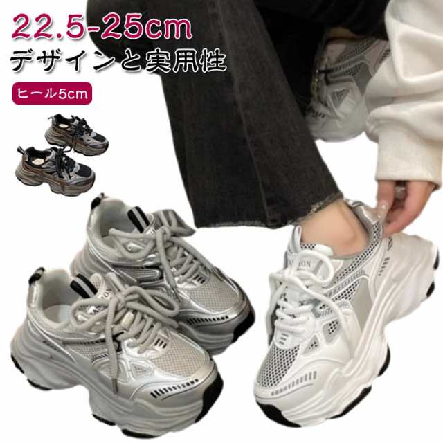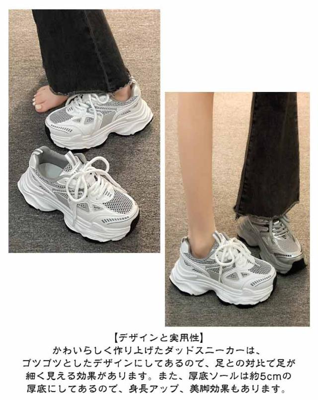 ローカット 厚底ソールで存在感抜群!ダッドスニーカー 歩きやすい 韓国 ダッドスニーカー ヒール5cm スニーカー レディース 美脚 ダッドシューズ 疲れにくい 厚底靴 軽量 オシャレ 厚底スニーカー 通学 通勤 22.5-25cm カジュアル シューズ 大人