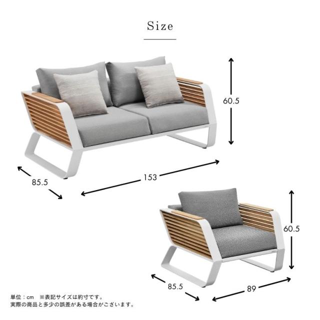 2シートソファ:約 横幅153×奥行85.5×高さ60.5cm