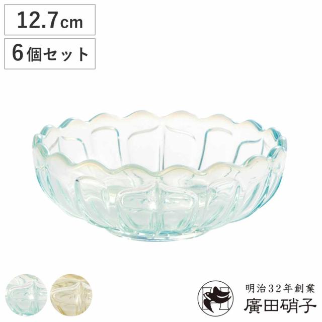 廣田硝子 小鉢 丸小鉢 雪の花 同色6個セット ( ガラス 日本製 ブルー 古代色 鉢 デザート デザート食器 うつわ 器 おしゃれ かわいい そうめん鉢 フルーツ スイーツ 夏 あんみつ ところてん かき氷 花 )
