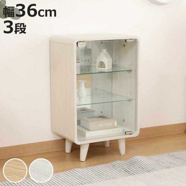 コレクションシェルフ 幅36cm 3段 ガラス扉 背面ミラー 推し活 ( ショーケース コレクションラック シェルフ ケース 棚 ラック ディスプレイ 収納 可動棚 ナチュラル ホワイトウォッシュ )