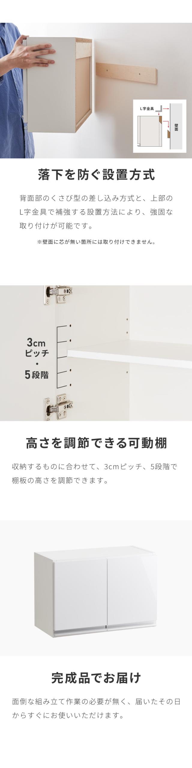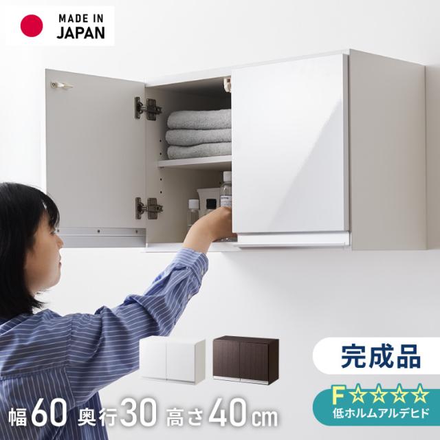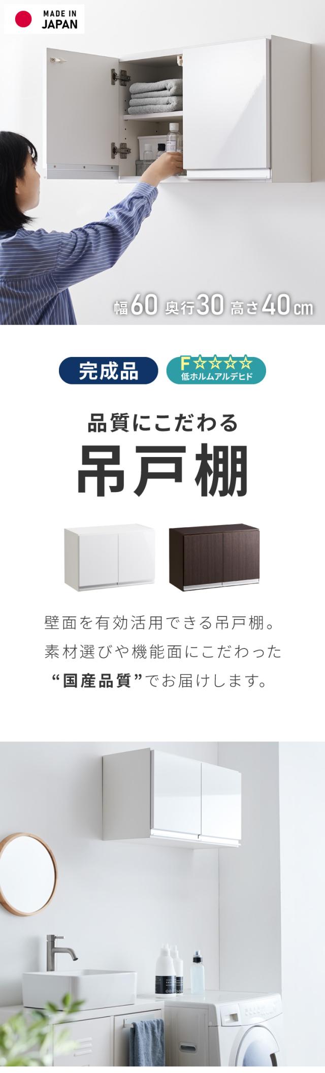 選べる吊戸棚豊富なサイズ 壁面収納 吊戸棚 幅60 奥行30 完成品 日本製 F☆☆☆☆ キッチン 洗面所 リビング 吊り戸棚 棚 可動棚 高さ調節 鏡面 木目 ホワイト ダークブラウン 完成品 洗面所収納(代引不可)【送料無料】