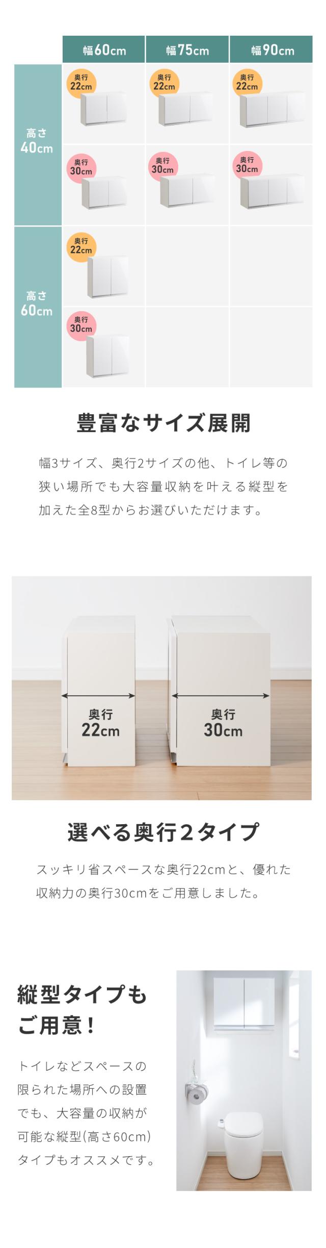幅60cm 奥行22cm | 幅60cm 奥行30cm | 幅75cm 奥行22cm | 幅75cm 奥行30cm |