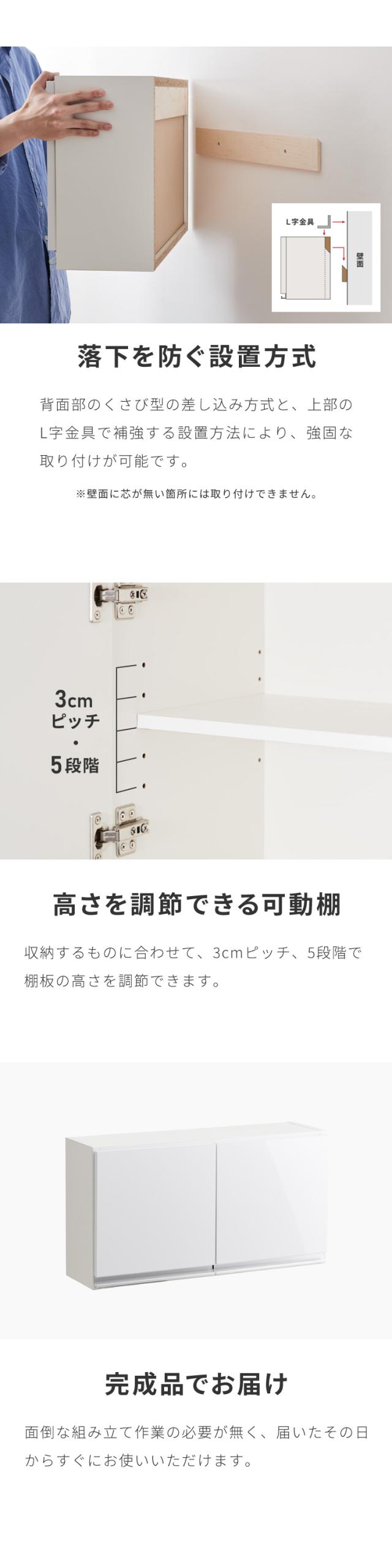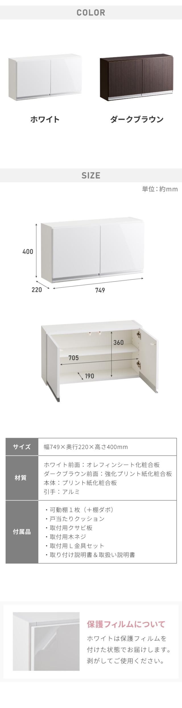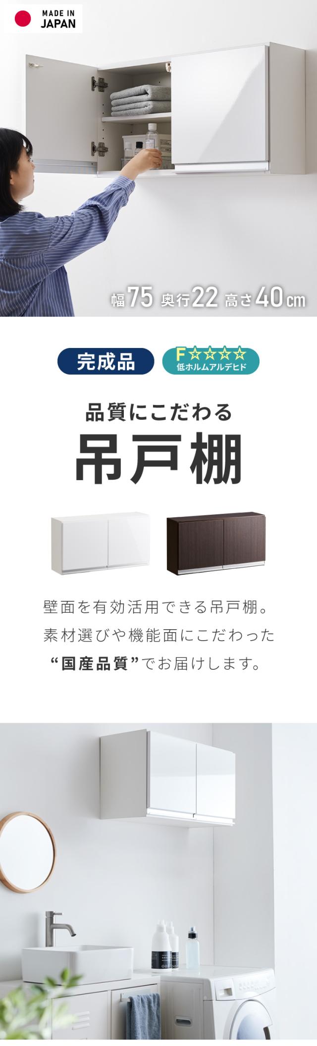 選べる吊戸棚豊富なサイズ 壁面収納 吊戸棚 幅75 奥行22 完成品 日本製 F☆☆☆☆ キッチン 洗面所 リビング 吊り戸棚 棚 可動棚 高さ調節 鏡面 木目 ホワイト ダークブラウン 完成品 洗面所収納(代引不可)【送料無料】