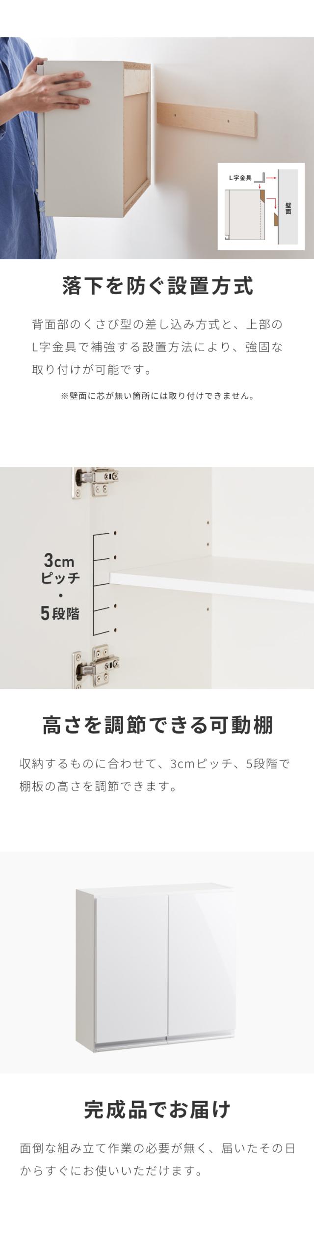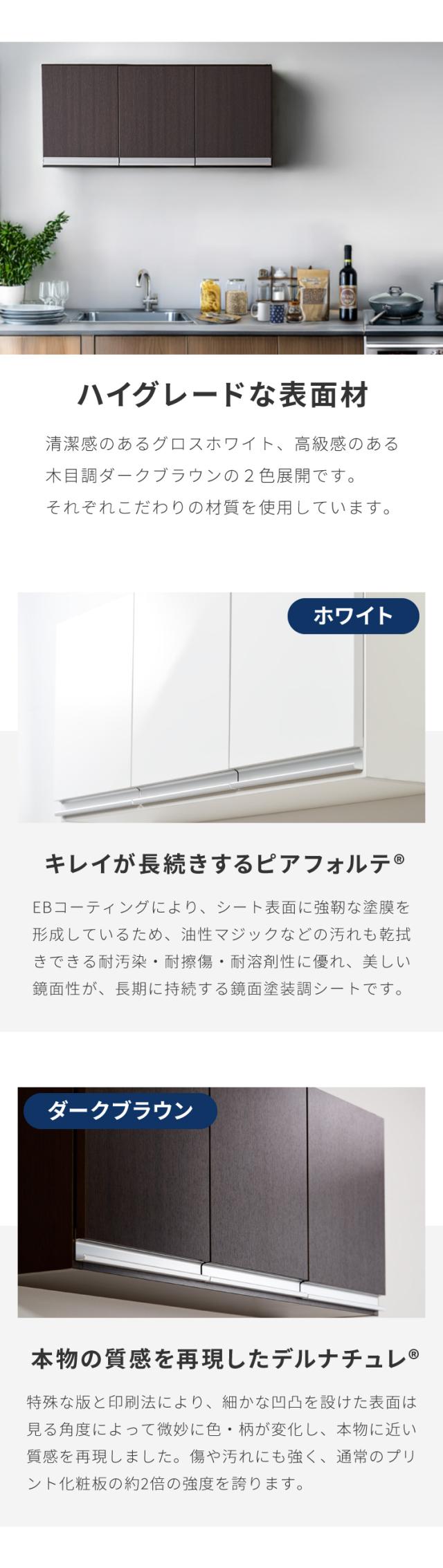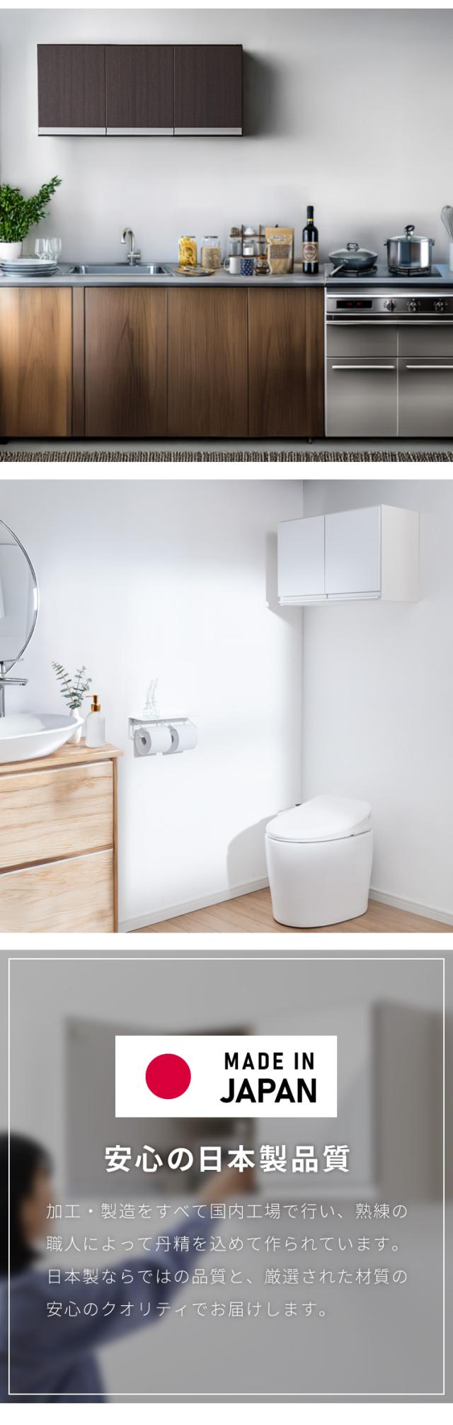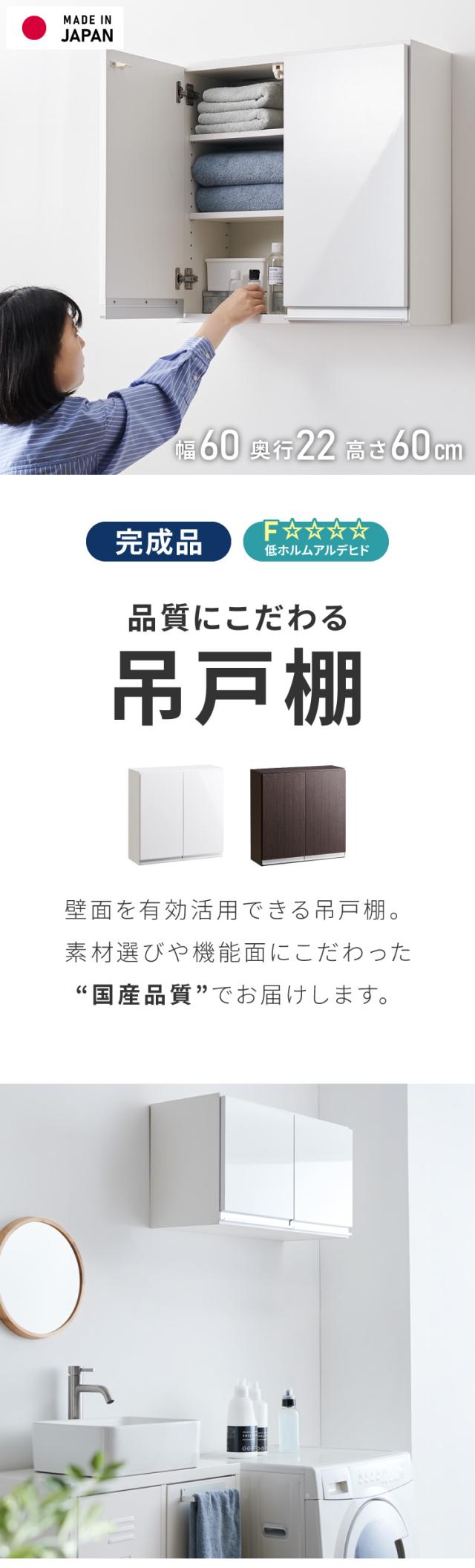 選べる吊戸棚豊富なサイズ 壁面収納 吊戸棚 縦型 幅60 奥行22 完成品 日本製 F☆☆☆☆ キッチン 洗面所 リビング 吊り戸棚 棚 可動棚 高さ調節 鏡面 木目 ホワイト ダークブラウン 完成品 洗面所収納(代引不可)【送料無料】