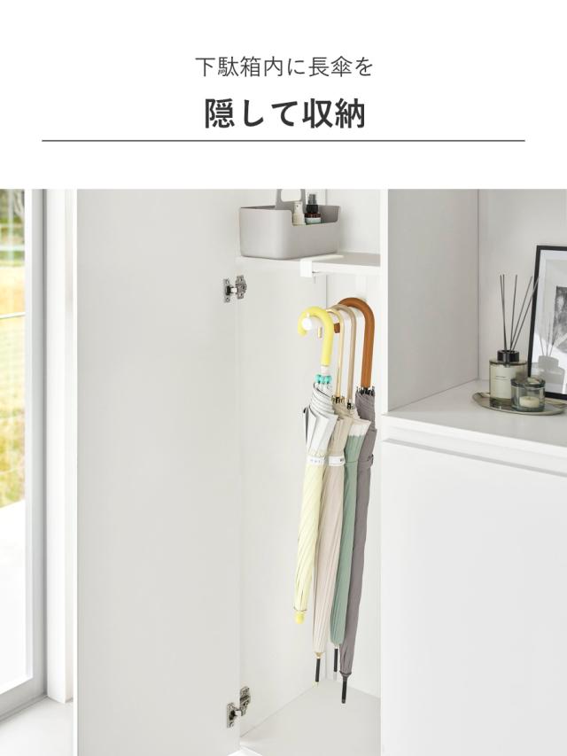 長傘をシューズクロークや下駄箱に収納できる傘立てです。表に出さずに隠すことで、玄関をスッキリ整頓できます。傘同士が絡まらずに取り出しやすいハンギングタイプです。
