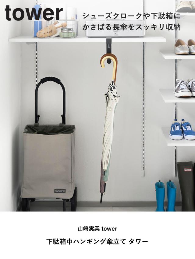 山崎実業 tower 下駄箱中ハンギング傘立て タワー ( 4903208100809 タワーシリーズ ハンギング傘立て 下駄箱中 ハンギング 傘立て 浮かせる収納 浮かせて収納 収納 傘 かさ立て 玄関 引っ掛ける かさ )