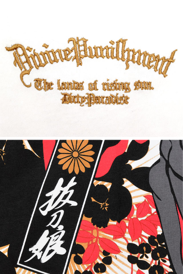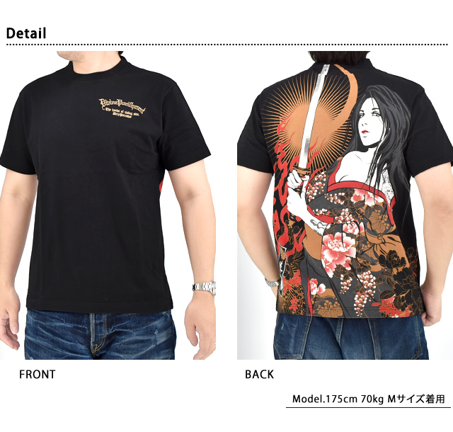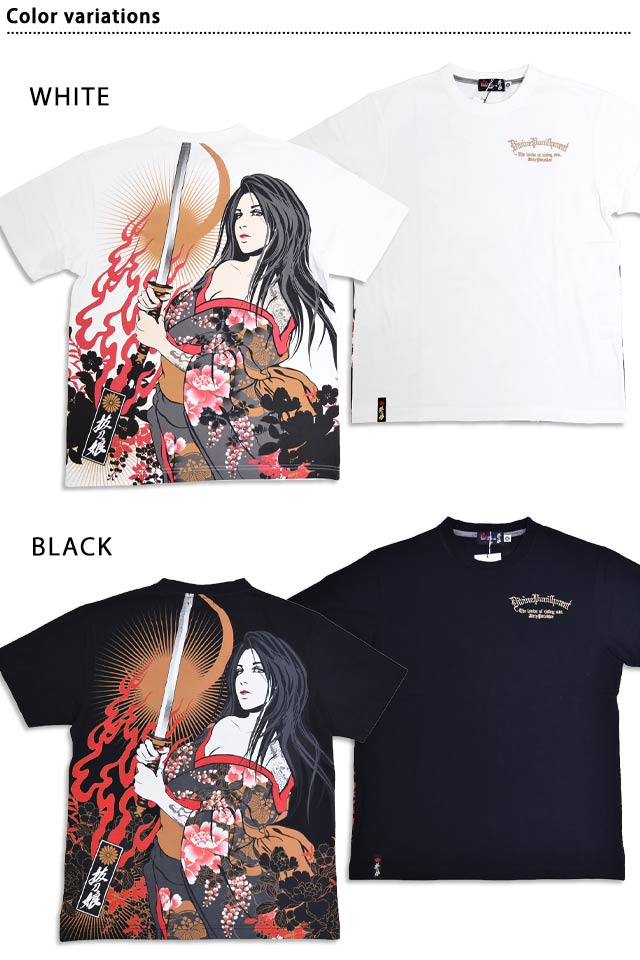絡繰魂の姉妹ブランドとして誕生した、従来の和柄から抜け出し、和の持つ美しさを融合させた【抜刀娘】から「抜刀娘 妃那闇討ち半袖Tシャツ(252137)」のご紹介です。 今回モチーフの主役に採用されたのは、美しい妃那。 背中には刀を構えた妃那の姿をダイナミックにプリントしました。 フロントにはレタードをワンポイントで刺繍。 | |||||||||||||||||||||||||