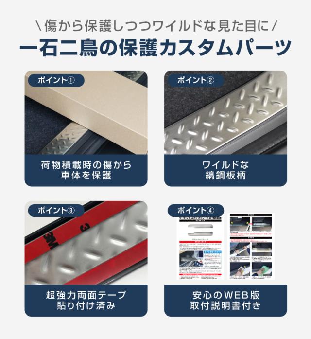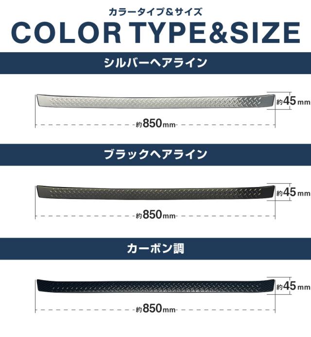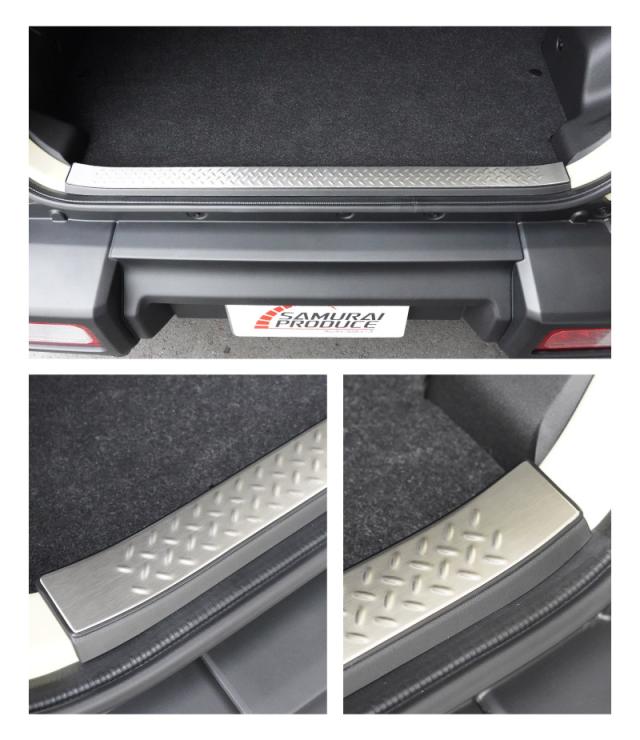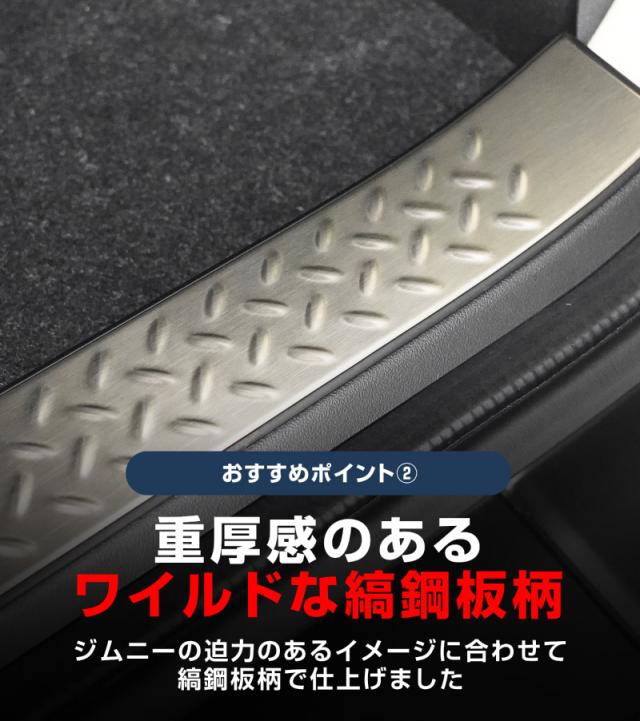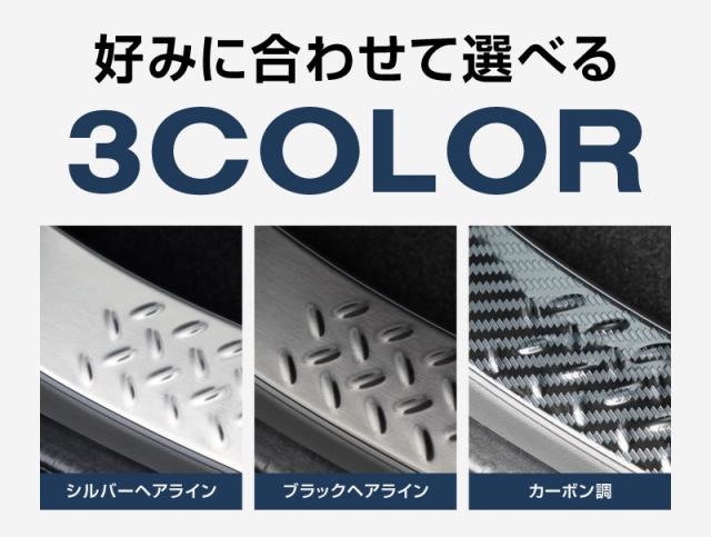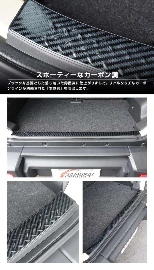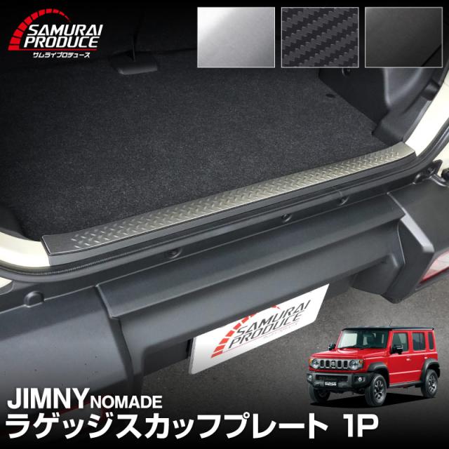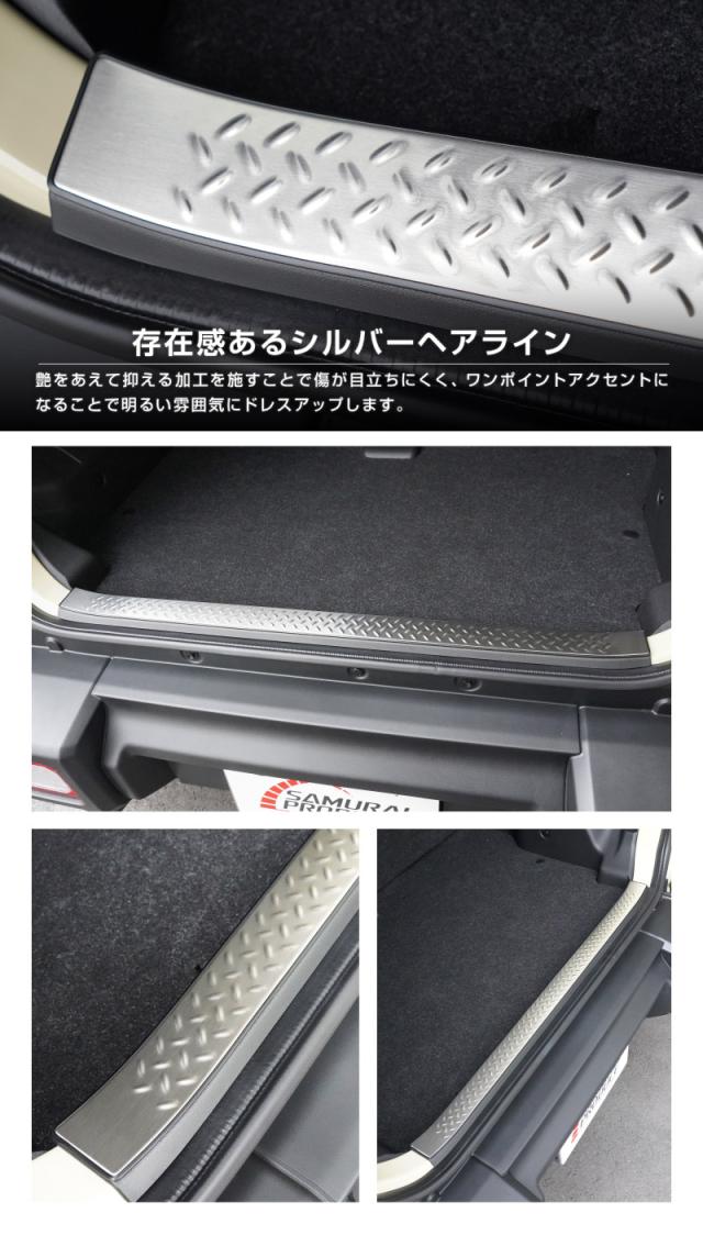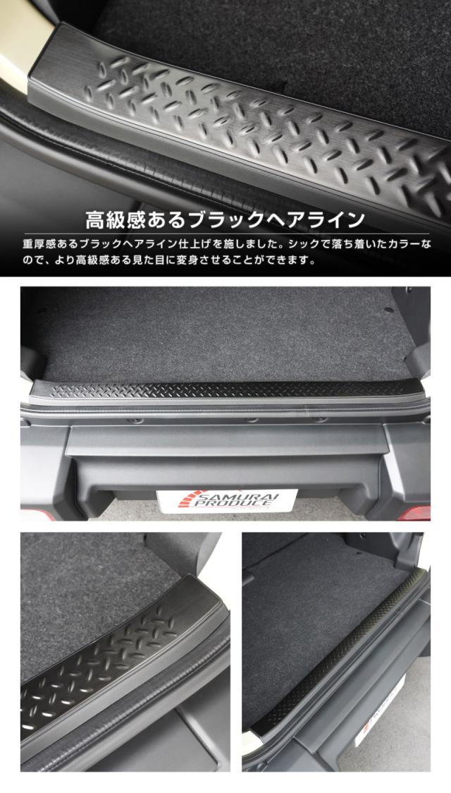 【予約/ブラック:1月30日頃入荷予定】ジムニー ノマド JC74W 専用 ラゲッジスカッフプレート 縞鋼板柄 1P 選べる3色 車体保護ゴム付き シルバーヘアライン ブラックヘアライン カーボン調