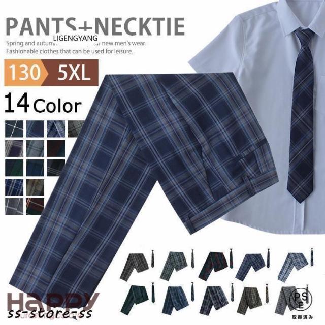 2点セット 制服 スクールパンツ ロングパンツ 男子 高校生 学生制服 ズボン チェック ネクタイ スクール せいふく 通学 学生服 キッズ ジュニア 子供 男の子 小学生 お受験 発表会 中学生 入学 卒業