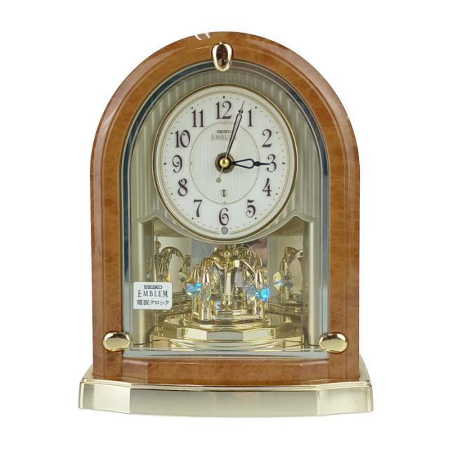 SEIKO セイコー 置時計 EMBLEM エンブレム HW584B ブラウン系 ゴールド プラスチック ユニセックス 電波時計 【本物保証】