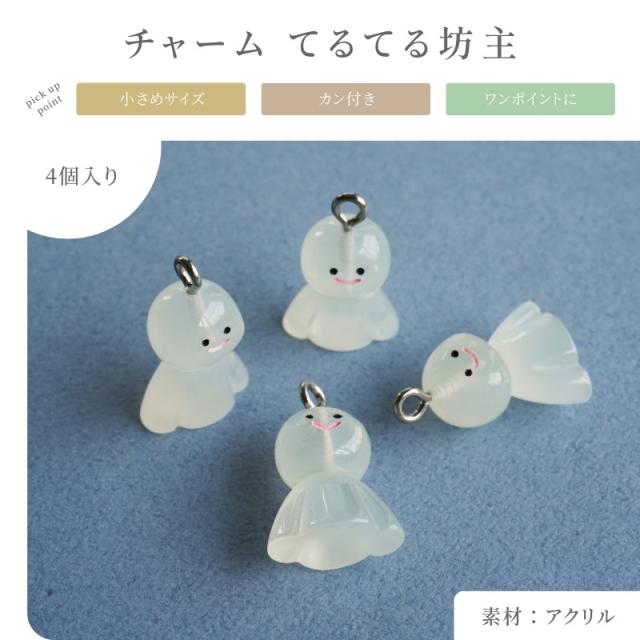 チャーム てるてる坊主 アクリル アクセサリー パーツ クリアホワイト 20mm 4個 カン付 ペンダントトップ 立体 約2cm ハンドメイド 問屋 ミニチュア アクリルチャーム アクリルパーツ ミニチャーム 小ぶり アクリル製 さや工房 おすすめ クラフト 手作り 卸