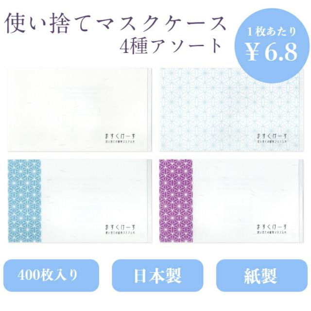 九州紙工 和柄マスクケース 100枚入り×4パック(アソート)七宝柄 紙製 使い捨て 飲食店 料亭 割烹 ホテル 美容室 歯医者 サロン 仮置き 和風 日本製 WMC-A