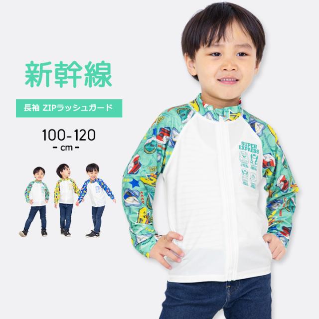 | ◎新幹線柄のおしゃれでかわいい長袖ZIPラッシュガード水着が登場! UVカット率90%以上で日差しから肌をしっかりガード! フィット感があって動きやすい。 海・プール・川遊びなど、水辺や水中使用にオススメのラッシュガードです。 ※色によって紫外線の透過が異なる為、白や淡色の部分が日焼けをしたり柄模様に日焼けをしたりする事がありますのでご注意下さい。 |