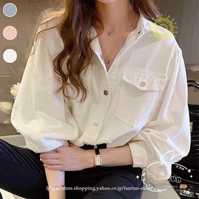 デニムシャツ レディース シャツ 厚手 ブラウス 長袖 ゆったり デニムシャツ 白 長袖シャツ ピンク 春 ライトアウター シャツジャケット 秋