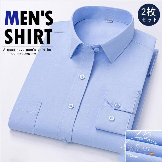 2枚セット ワイシャツ メンズ ノーアイロン 大きいサイズ 長袖 Yシャツ カッターシャツ ノーマル 白 無地 快適 父の日ギフト就活 リクルート