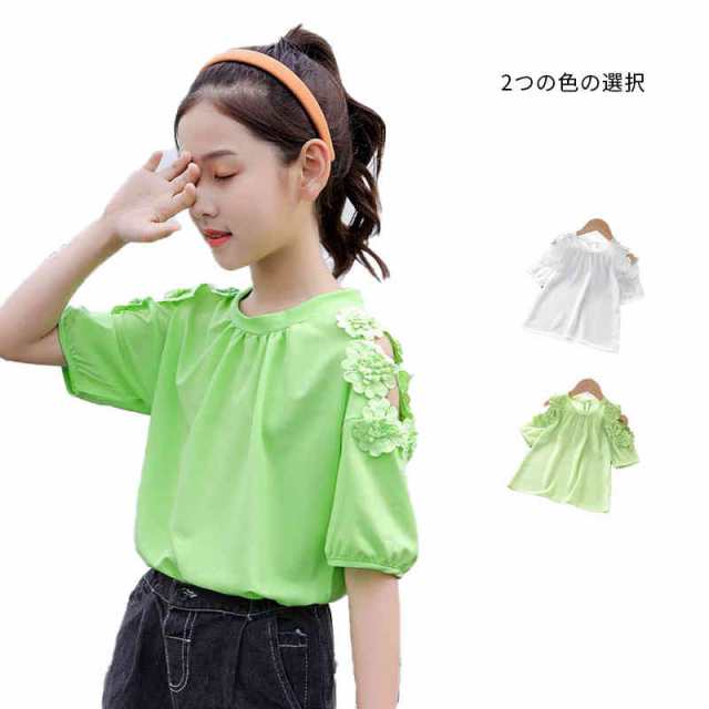 半袖 トップス おしゃれ 送料無料 キッズ シャツブラウス おしゃれブラウス フラワーブラウス フォーマルブラウス 肩出しブラウス 半袖 Tシャツ 子供服 女の子 肩出し インナーブラウス 子供ブラウス 夏用 無地 シンプル カジュアル トップス