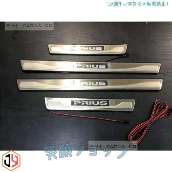 ステンレス製 LED スカッフプレート ZVW30 30系 プリウス 4ピース ブルー発光 青 前期 後期 共通 ステップ ライト 配線図付 / 103-13 NC*