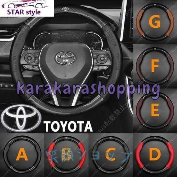 ハンドルカバー O型 トヨタ クラウンロイヤル シエンタ ノア ハイラックス ハリアー RAV4 本革 カーボン調 高級 牛革 専車ロゴ 内装品パーツ 滑りにくい