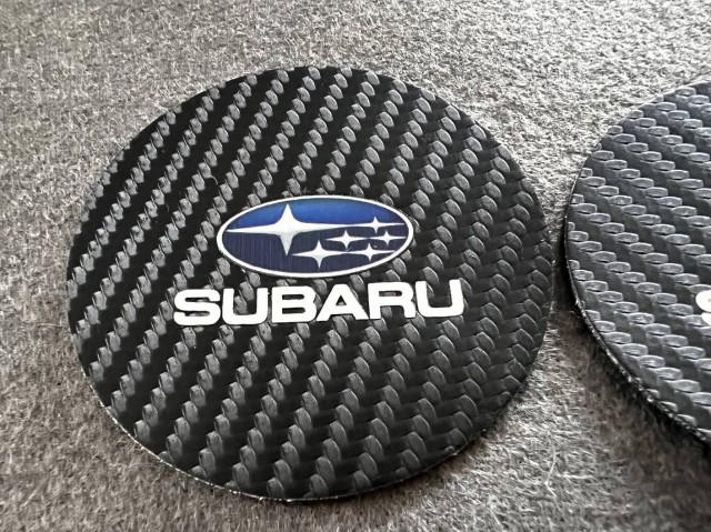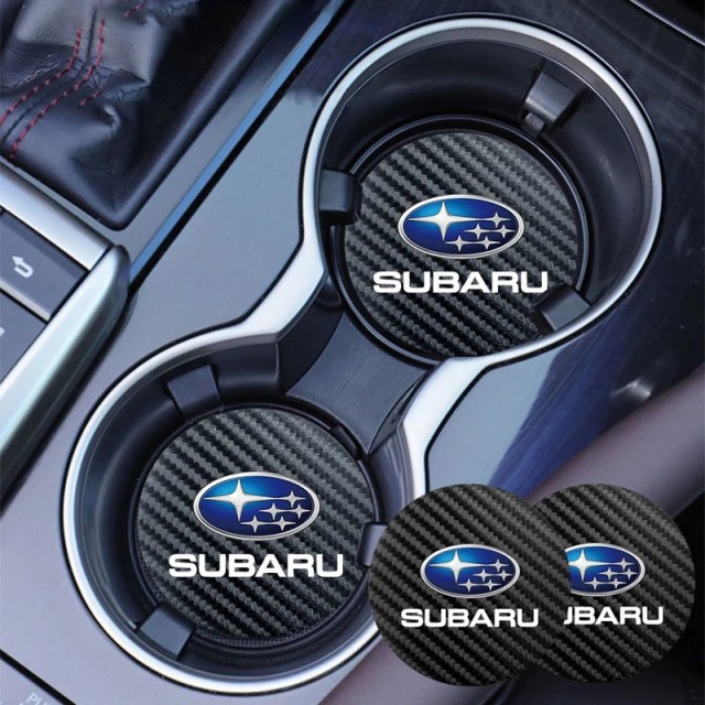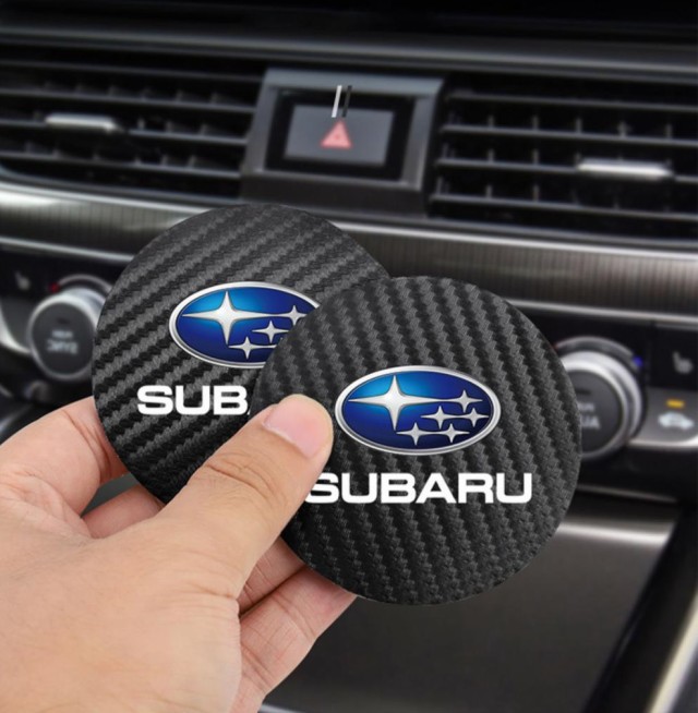 ◆スバル SUBARU◆炭素繊維 カップパッド ドリンクホルダー 装飾 ロゴ コースター ホルダー 直径7cm 2枚セット aaad qtm