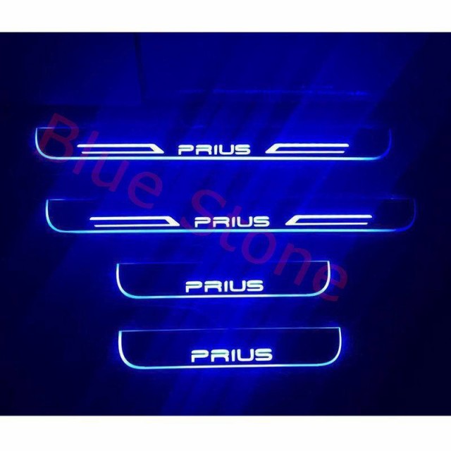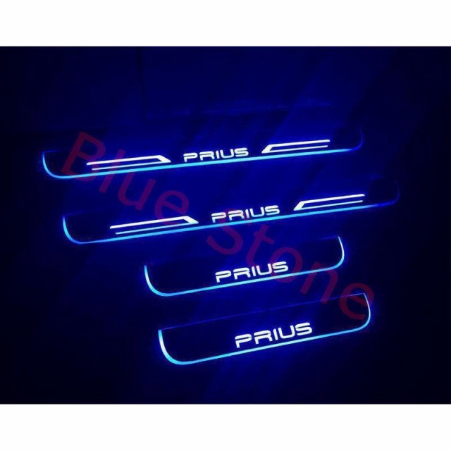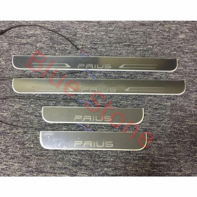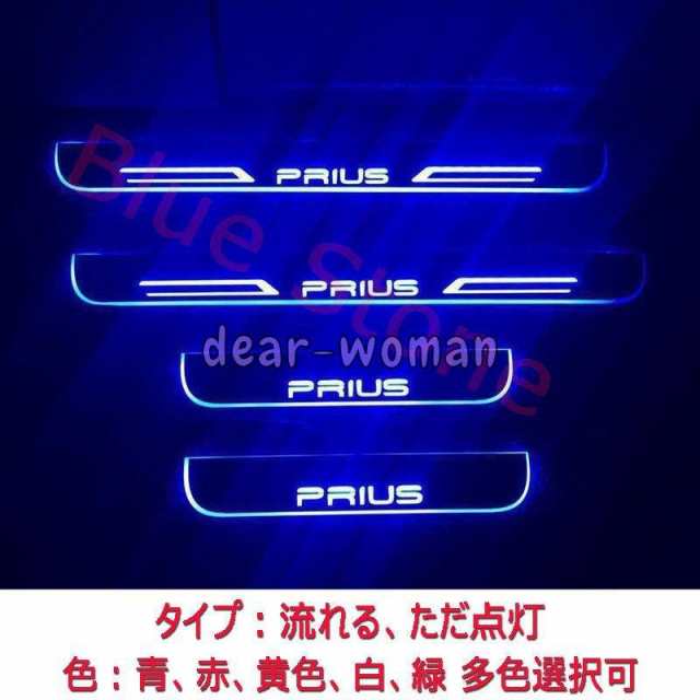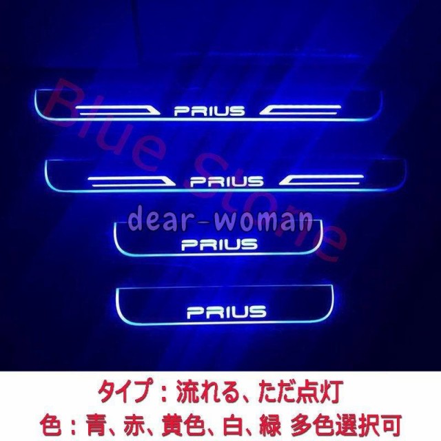 PRIUS プリウス LEDスカッフプレート ブルー流れる光 LEDステップ ライトランプ 前後4枚セット プリウス50系/40系/30系/20系共用 青色 赤色 カスタム パーツ