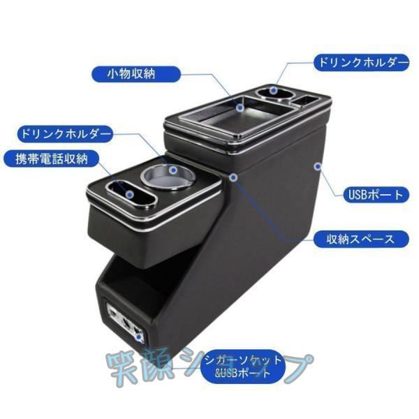 コンソールボックス 車用アームレスト 汎用 ワゴン ミニバン アームレストコンソール 肘掛け 前後期 USB充電ポート付き 車内収納ボックス