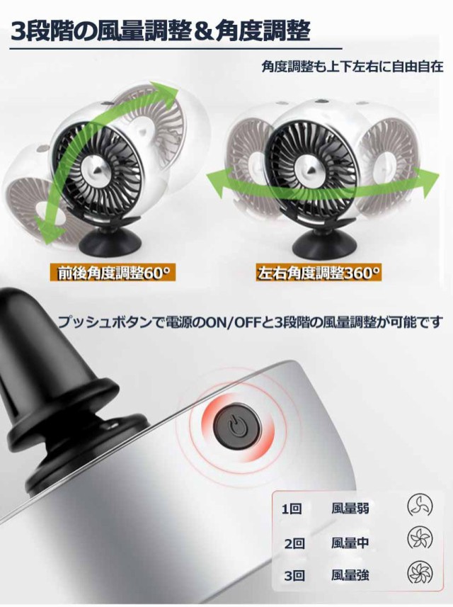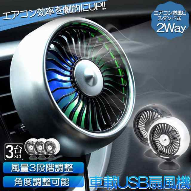 扇風機 車載扇風機 車載USBファン 3個セット 車用 車載 風量3段階 LEDライト 角度調節 2way USB扇風機 ポータブル扇風機 卓上扇風機 ファン ポータブル サーキュレーター 車用ファン USBファン 熱中症対策 車中泊 省エネ 夏対応