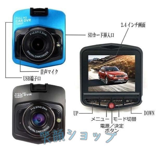 ドライブレコーダー 配線不要 ドラレコ 2.4インチ フルHD 広角 小型 マイクロSD 簡単取付