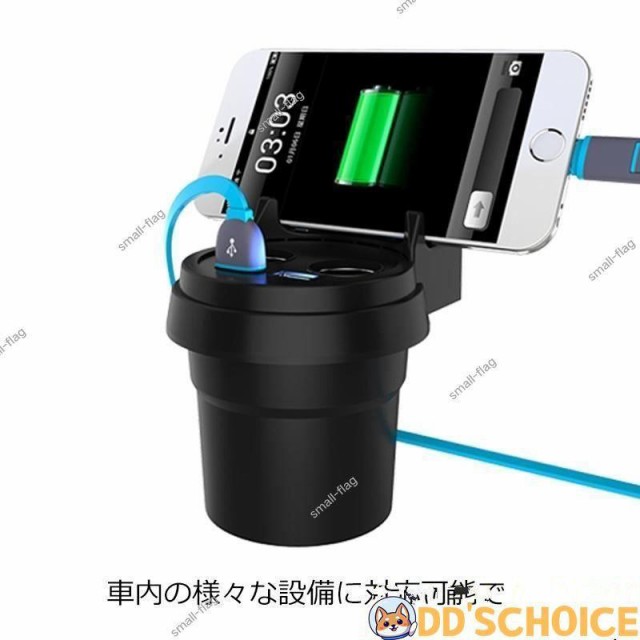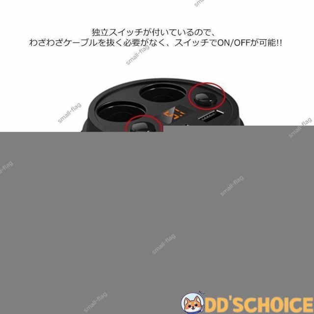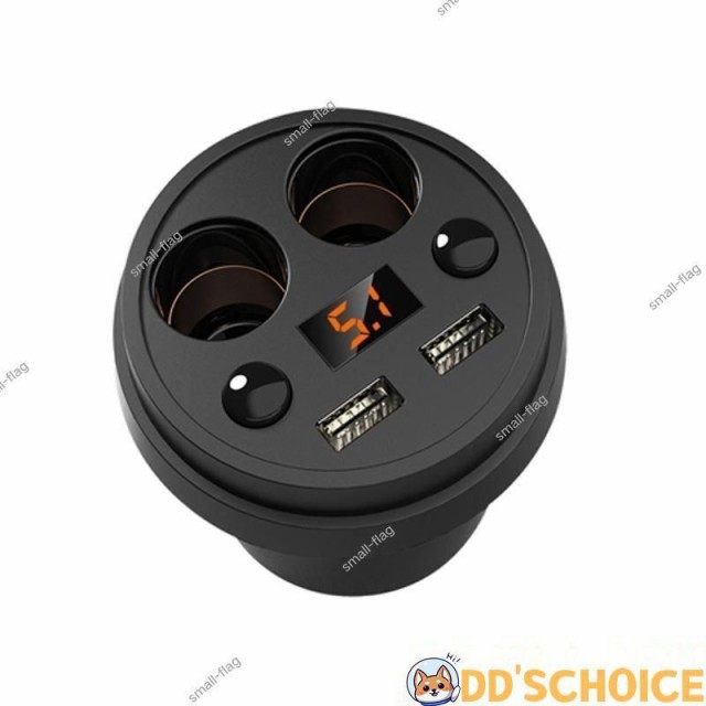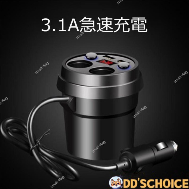 2連増設 シガーソケット 車載充電器 カップ型 増設シガーソケット シガーライター 分配器 2USBポート 充電 電圧測定 ソケット 電圧表示 カー用品 12V 24V対応
