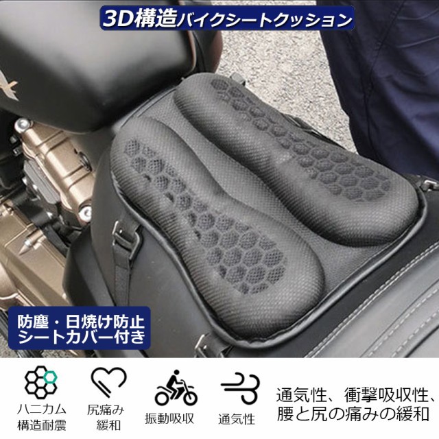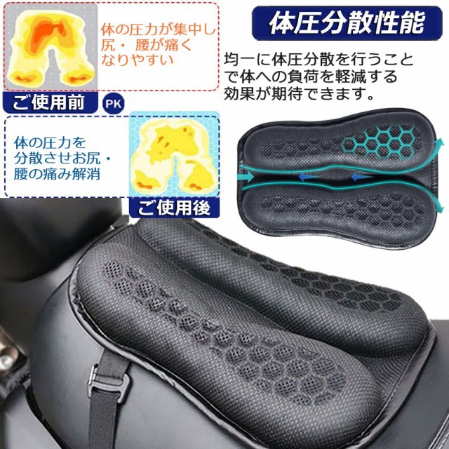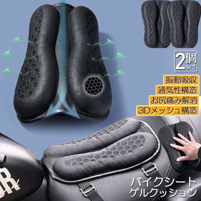 バイク シート クッション 2個セット ゲルクッション ゲルシートカバー 3D メッシュシートカバー 四季通用 通気 衝撃吸収 人間工学 断熱 日焼け止め 濡れ防止 換気 バイク シートカバー スクーター用 メッシュシートカバー 汎用品 オートバイシートカ