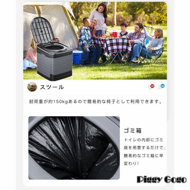 簡易トイレ 非常用 グッズ ポータブル 車中泊 キャンプ アウトドア 折りたたみ トイレ 防災 介護 登山 避難 緊急 仮設 携帯 椅子 野外 便器 水洗 車内 凝固剤