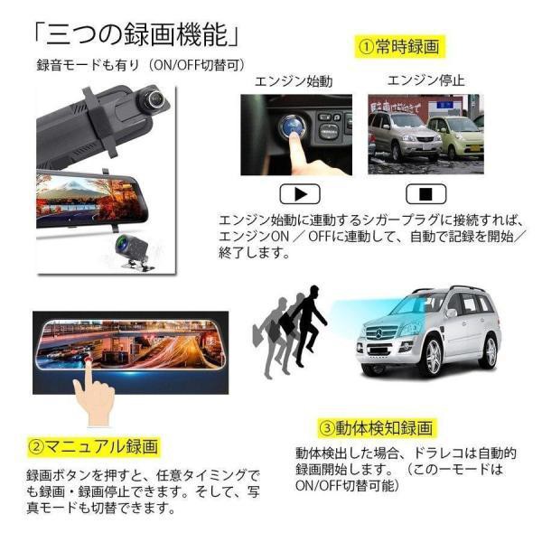 ドライブレコーダー 前後カメラ 駐車監視 ミラー型 1080P 液晶 32Gカード フルHD高画質 常時 衝撃録画 駐車監視対応 10インチ液晶