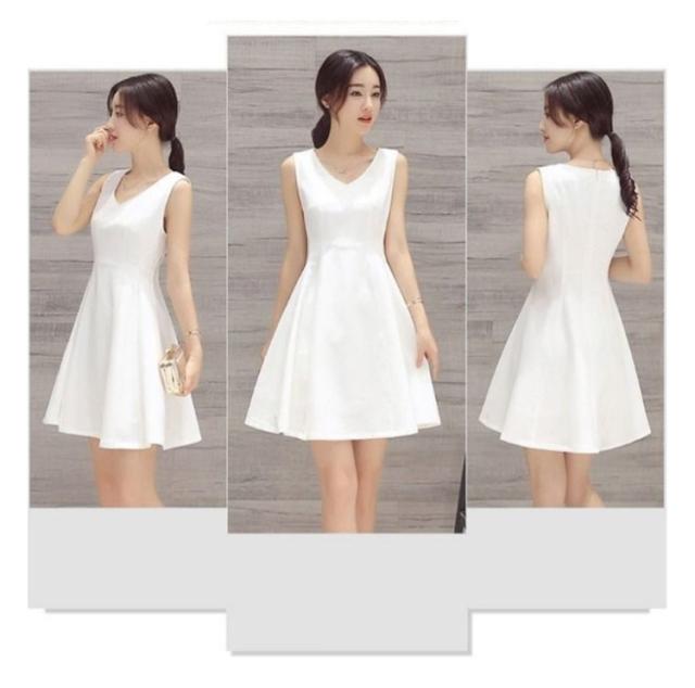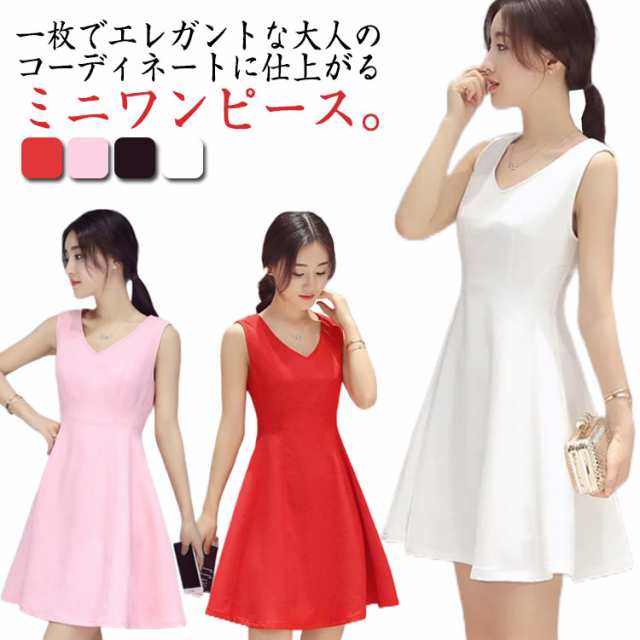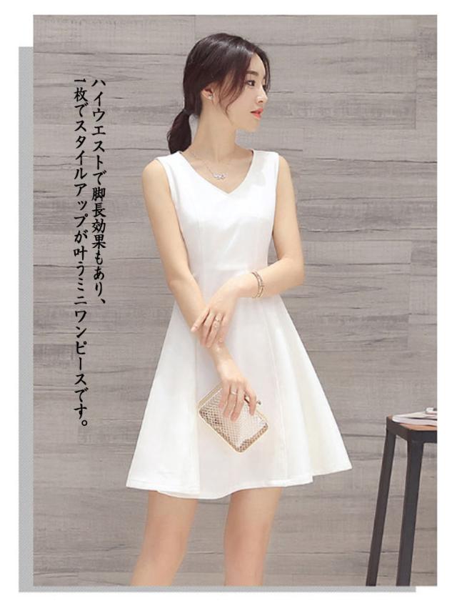 【送料無料】ミニワンピース ミニドレス 白 韓国 ノースリーブ Vネック キャバ フレアワンピース aラインワンピース タイト レディース 結婚式 発表会 キャバドレス 上品 無地 大人可愛い 黒 ホワイト ブラック