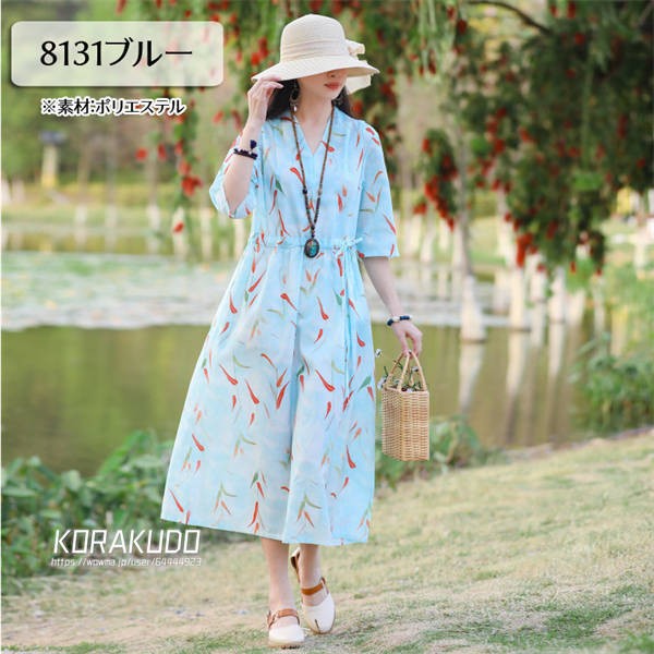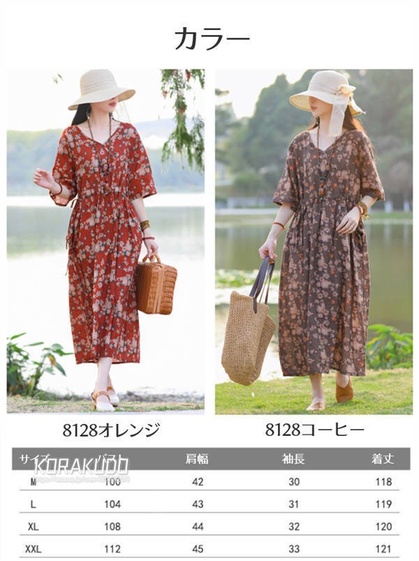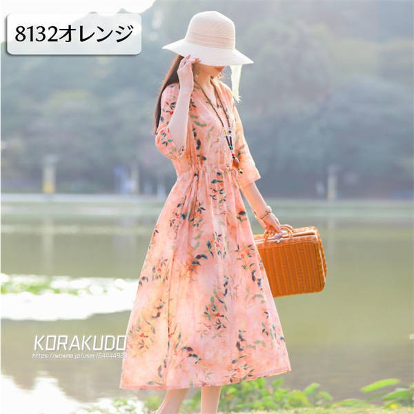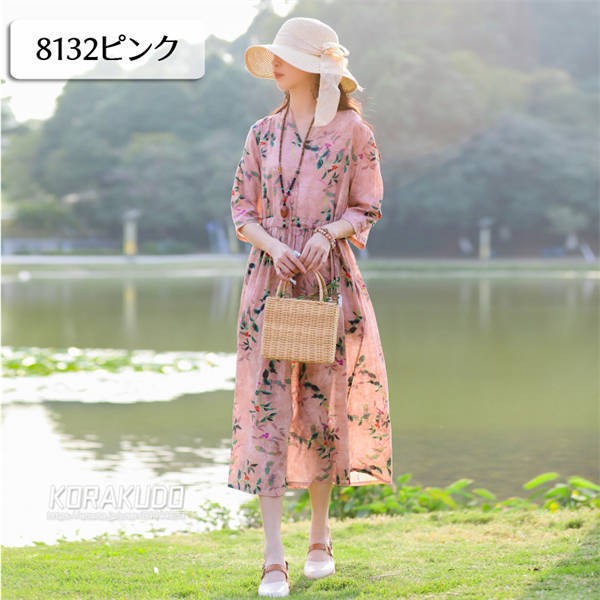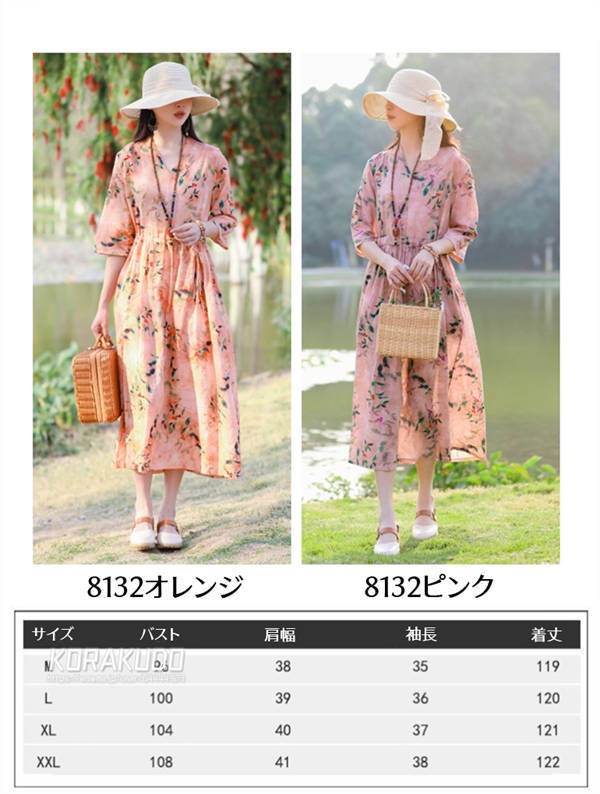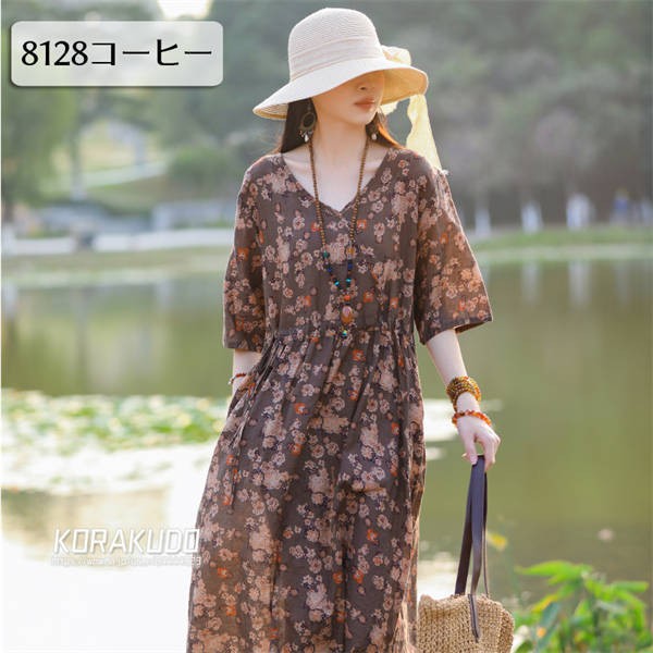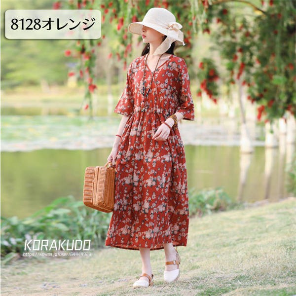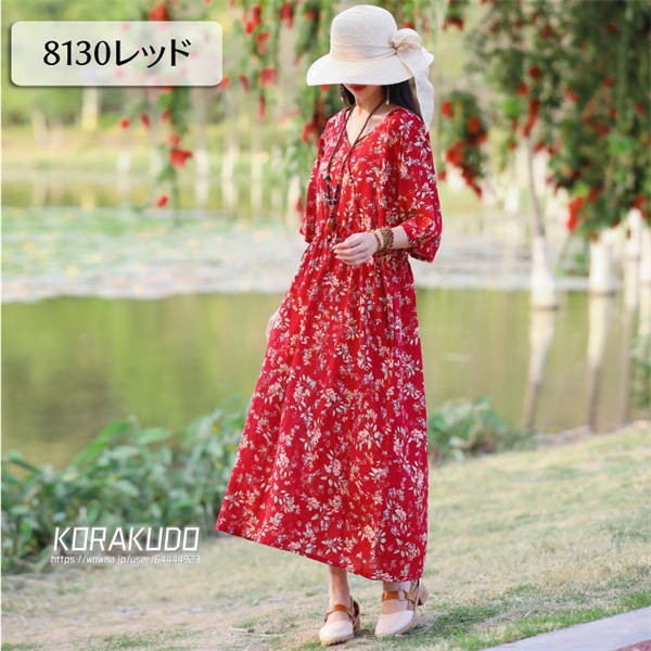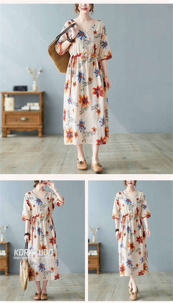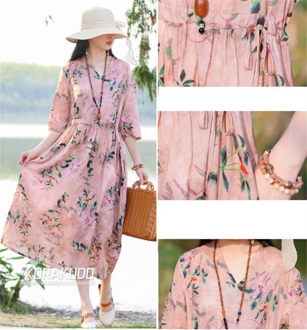 リネン混 ワンピース フレンチスリーブ ウエストゴム 綿麻 リネン混 ワンピース ロング マキシ A ライン ウエストシャーリング ワンピ レディース リネンワンピース