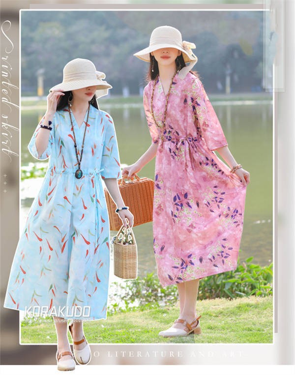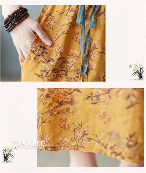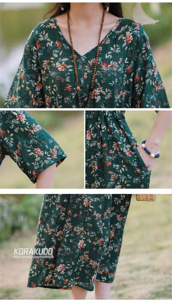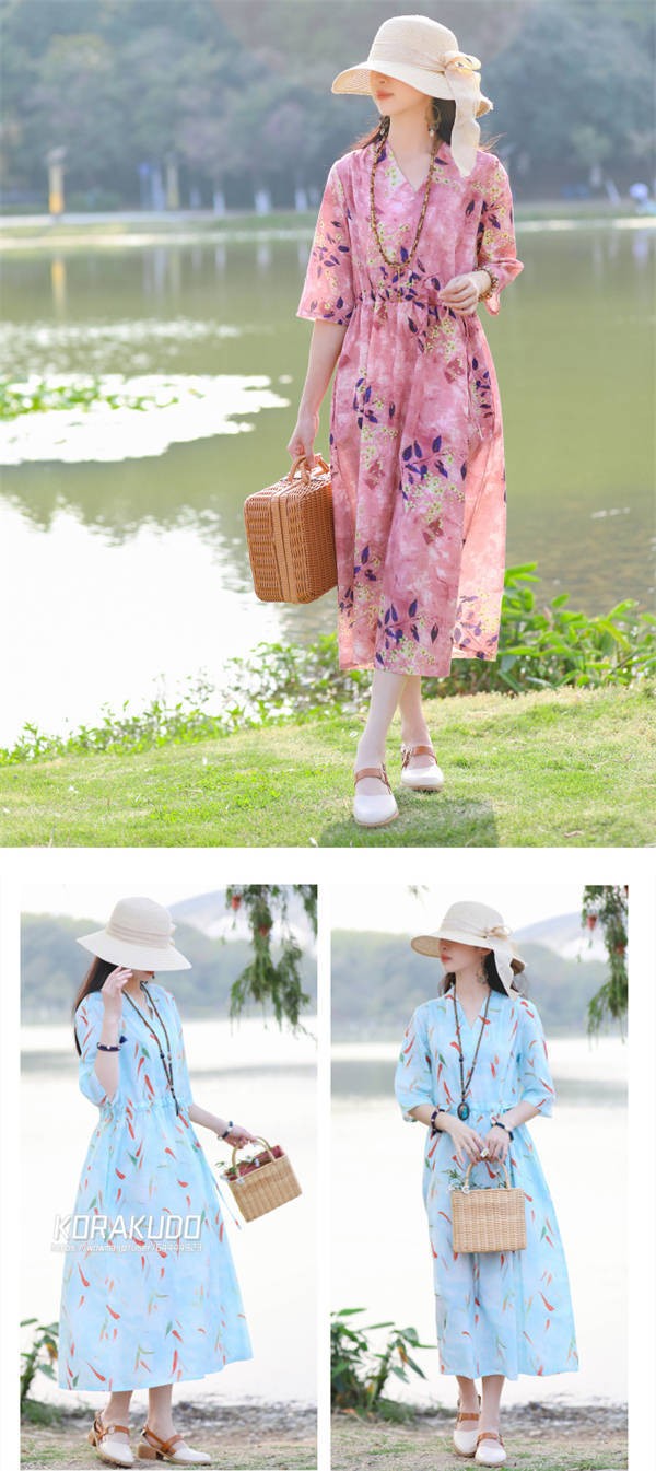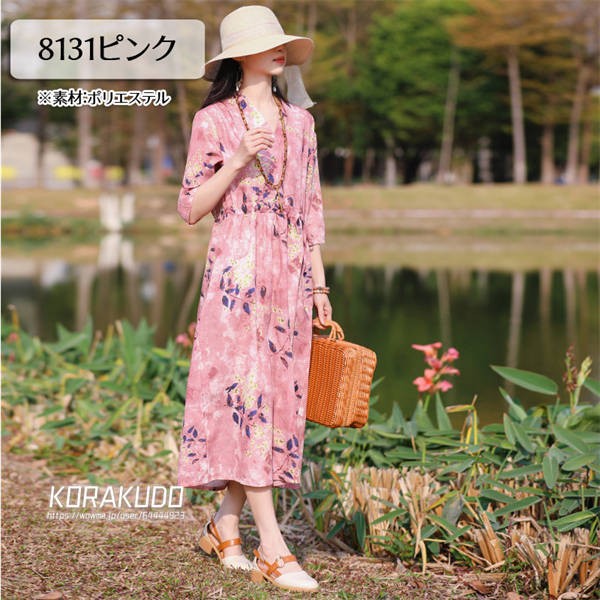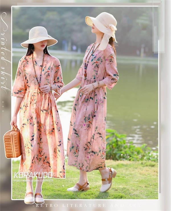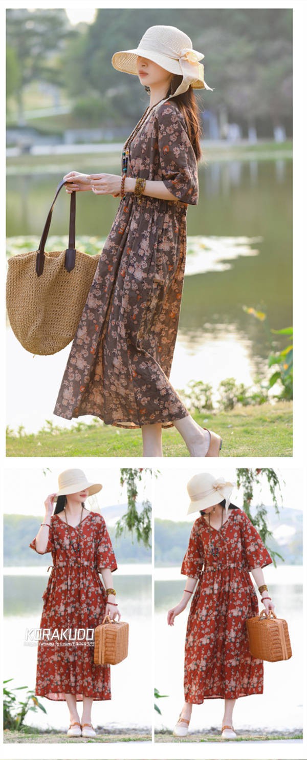 リネン混 ワンピース フレンチスリーブ ウエストゴム 綿麻 リネン混 ワンピース ロング マキシ A ライン ウエストシャーリング ワンピ レディース リネンワンピース