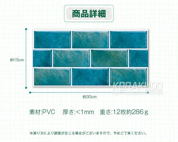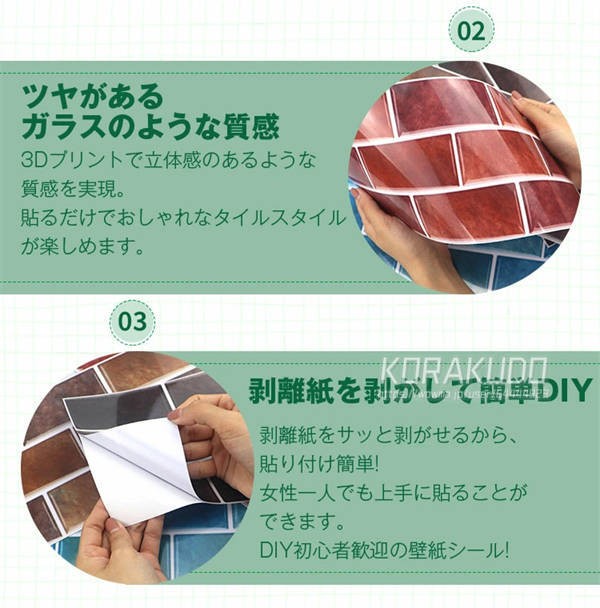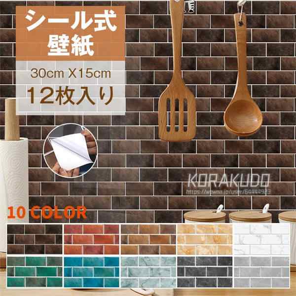 12枚入り 壁紙 シール レンガ のり付き 15cm*30cm ウォールステッカー キッチンシート クロス リメイクシート 粘着シート はがせるリフォーム 張り替え 模様替え インテリア 北欧 ビンテージ DIY 防水 耐油 防油 簡単 張替え 洗面所 キッチン 無地 人気 新生活