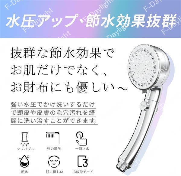 シャワーヘッド ミスト 保湿 3段階モード 節水 増圧 美容 極細水流 手元止水 敬老の日 父の日 母の日 プレゼント 超微細泡 ナノバブル ギフト ワンタッチ止水 軽量 シャワー お風呂 入浴 取付簡単 工具不要 送料無料 手元スイッチ
