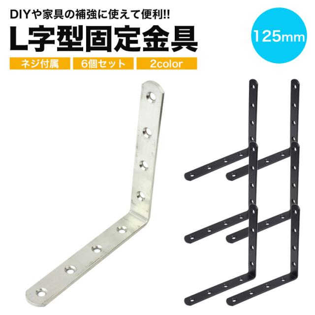 6個セット 棚受け金具 ブラケット DIY アイアン アングル 125mm ラック ネジ リノベーション L字 l字 金具 L型 l型 棚受け 地震 耐震 転倒 家具 固定 補強 補修 修理 パーツ 便利 ステンレス 頑丈