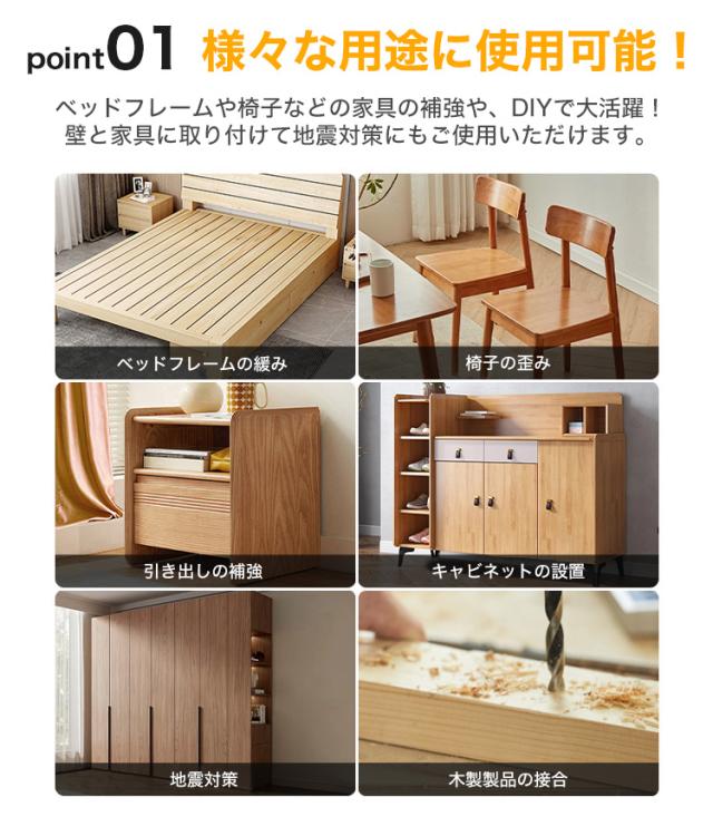 壁と家具に取り付けて地震対策にもおすすめです。