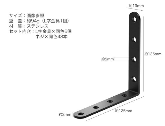 セット内容:L字金具×同色6個、ネジ×同色48本