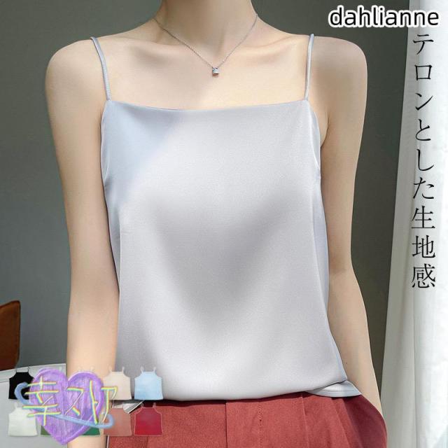 「レディ感漂う光沢」サテン キャミソール インナー 大きいサイズ レディース シルク風生地 光沢感 トップス きれいめ ノースリーブ 下着 肌着 アンダーウェア バスト 二重 透けにくい カップなし スクエアネック 胸元カバー チラ見え防止 ルームウェア 部屋着 薄手 黒 白