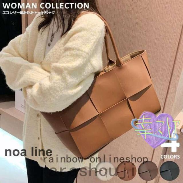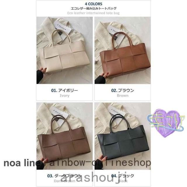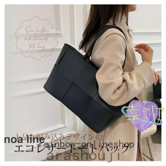トートバッグレディース大きめA4編み込みアイボリーブラウンブラック通勤合皮おしゃれかわいいマザーズバッグ
