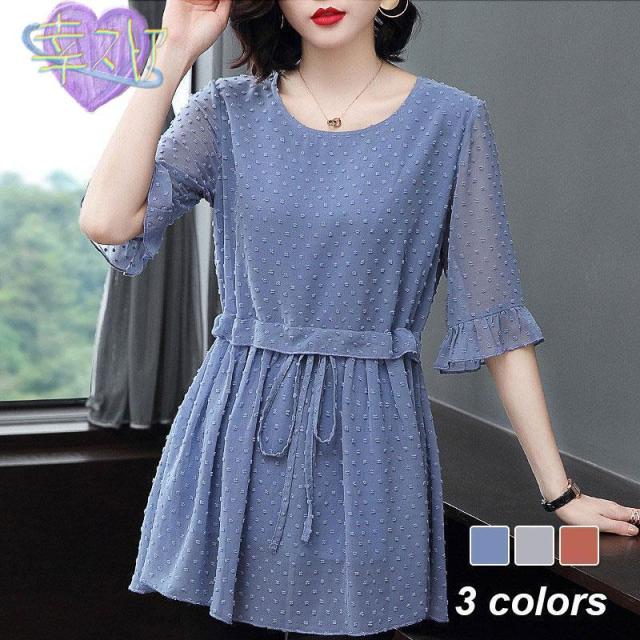 ブラウス レディース 40代 トップス 春夏 韓国風 チュニック 半袖 体型カバー 大きいサイズ ゆったり おしゃれ 30代 50代 おしゃれ 大人