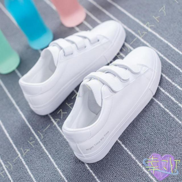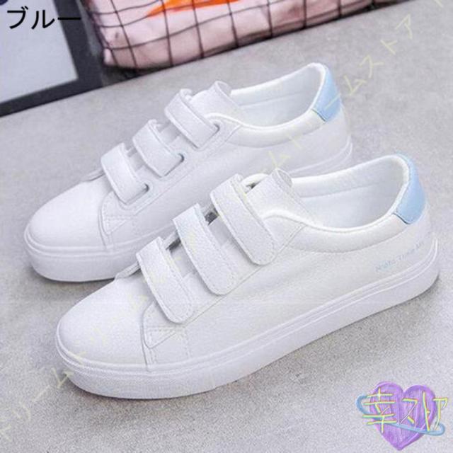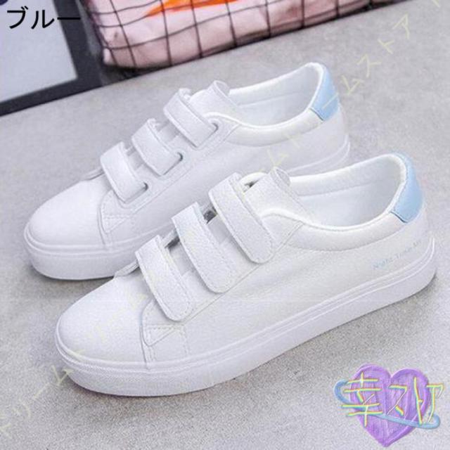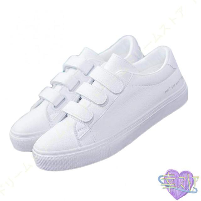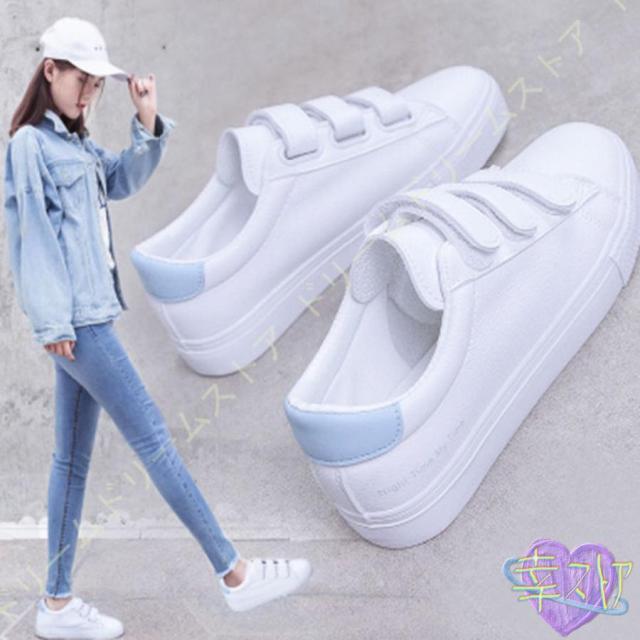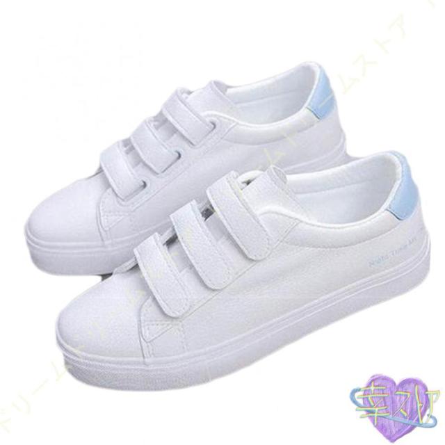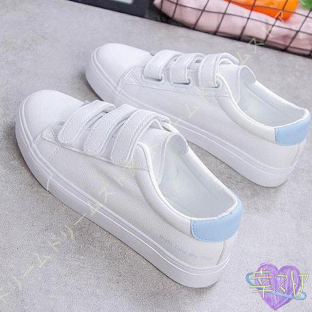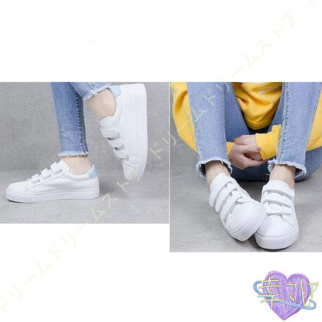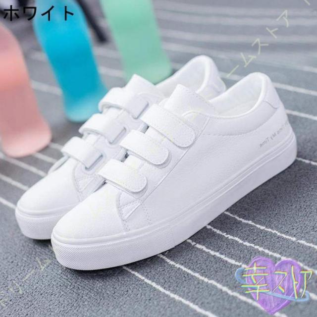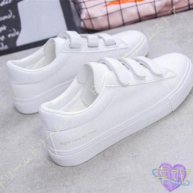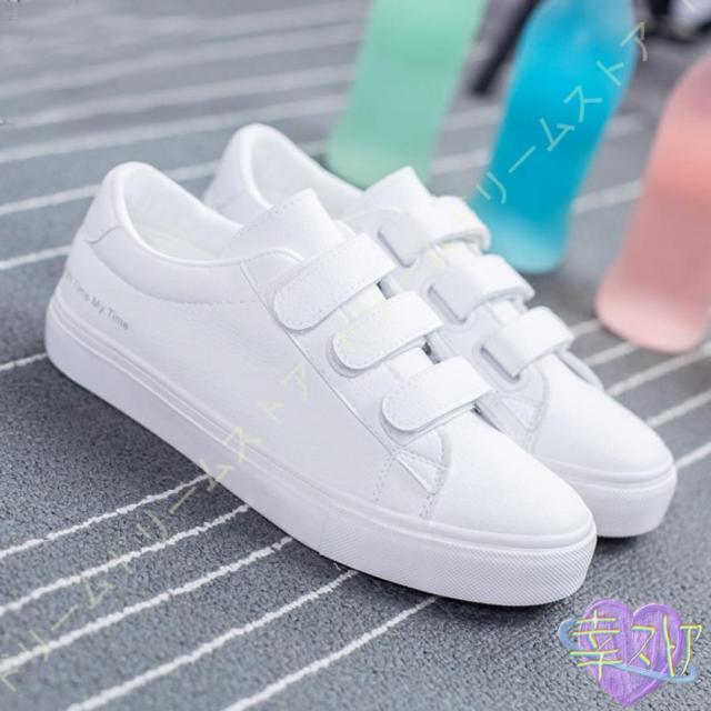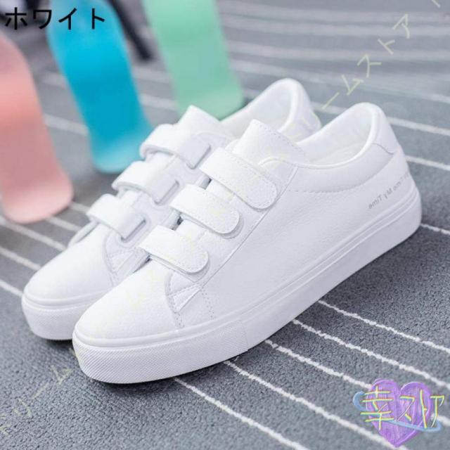 スニーカー レディース 白 おしゃれ かわいい カジュアル シューズ マジックテープ シューズ ベルクロ スリッポン 厚底 美脚 通学 通勤 仕事 靴 シンプル