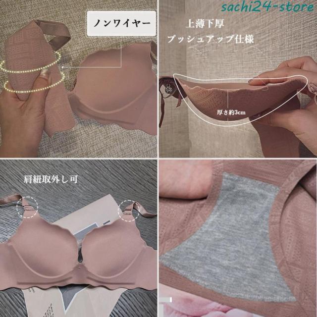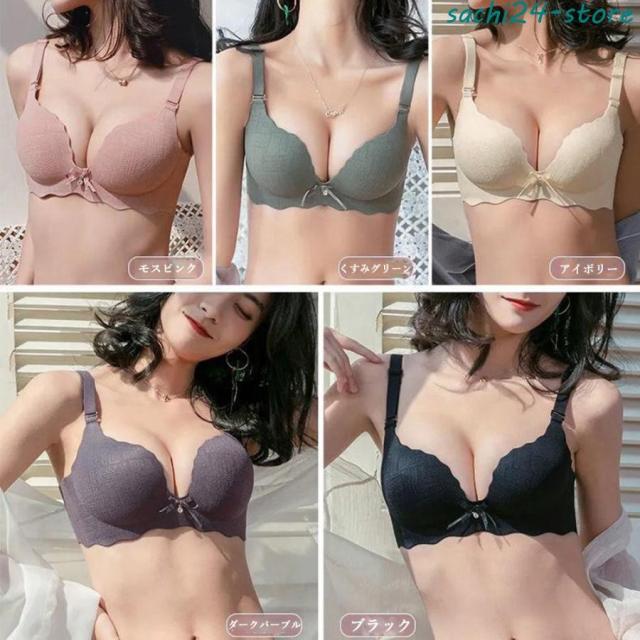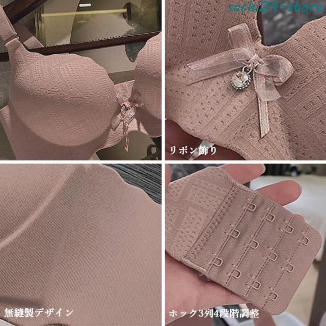 レディース ランジェリーセット プッシュアップ フロントリボン ナイトブラ 脇スッキリ シームレス 2点セット