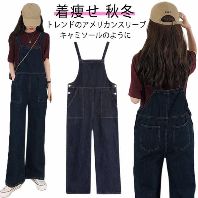 サロペット レディース オールインワン デニム トップス ボトムス 秋冬 キャミソールサロペット リー オールインワン オーバーオール デニム ジーンズ ジーパン レディース サロペットパンツ ロング丈 フロントファスナー ジップアップ シンプル 肩紐調節可 大きいサイズ